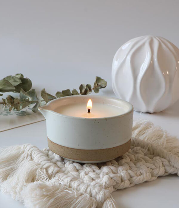 100% soy wax with cotton wicks or sustainable wood wicks.